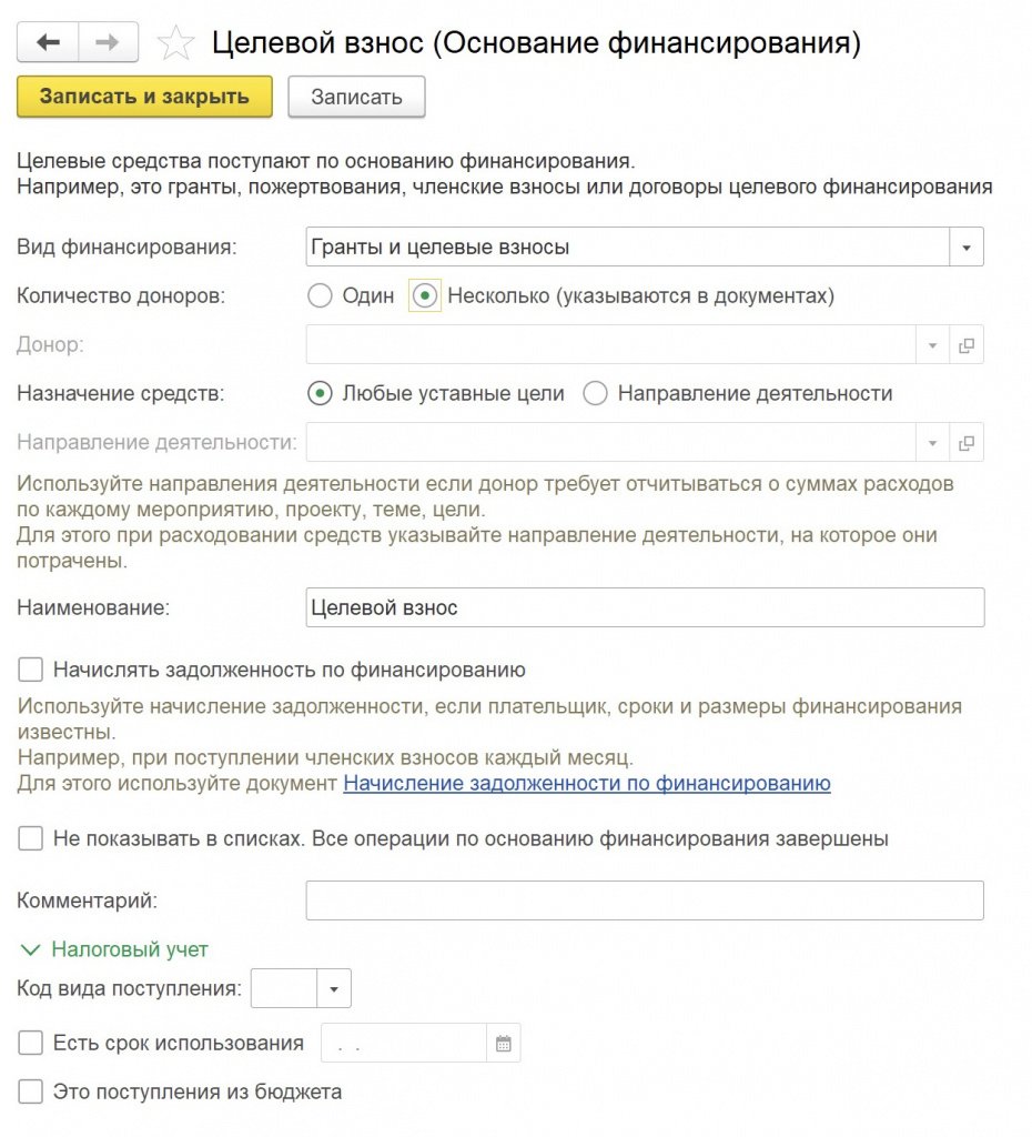 Учет целевого финансирования в «1С:Бухгалтерии некоммерческой организации»