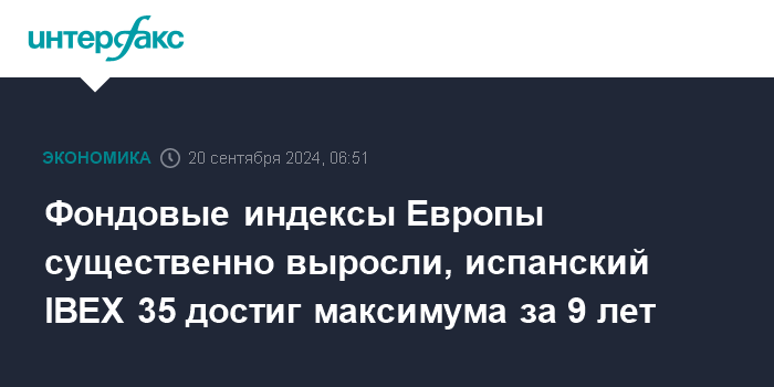 Испанский IBEX 35 прибавил 0,8% и завершил сессию на самой высокой отметке более чем за 9 лет, сообщает Trading Economics. В том числе подорожали акции банков, включая BBVA (+3,4%), Sabadell (+2,5%) и Santander (+2%), а также ритейлера одежды Inditex (+2,2%).