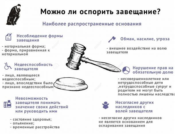 Чтобы понять, как можно оспорить завещание, следует знать поводы, на основании которых документ оспаривается: